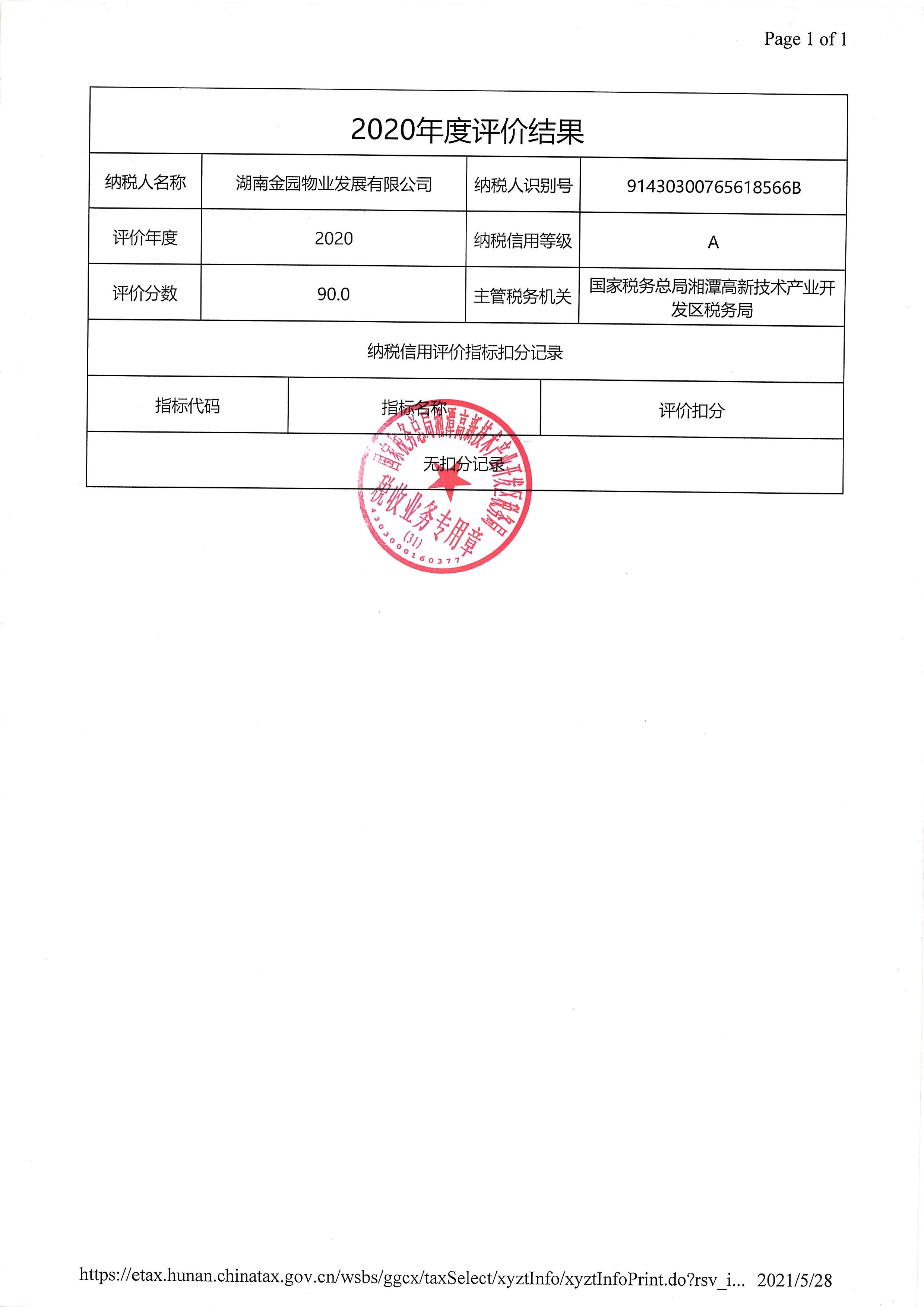 企業(yè)納稅信用等級報(bào)告: