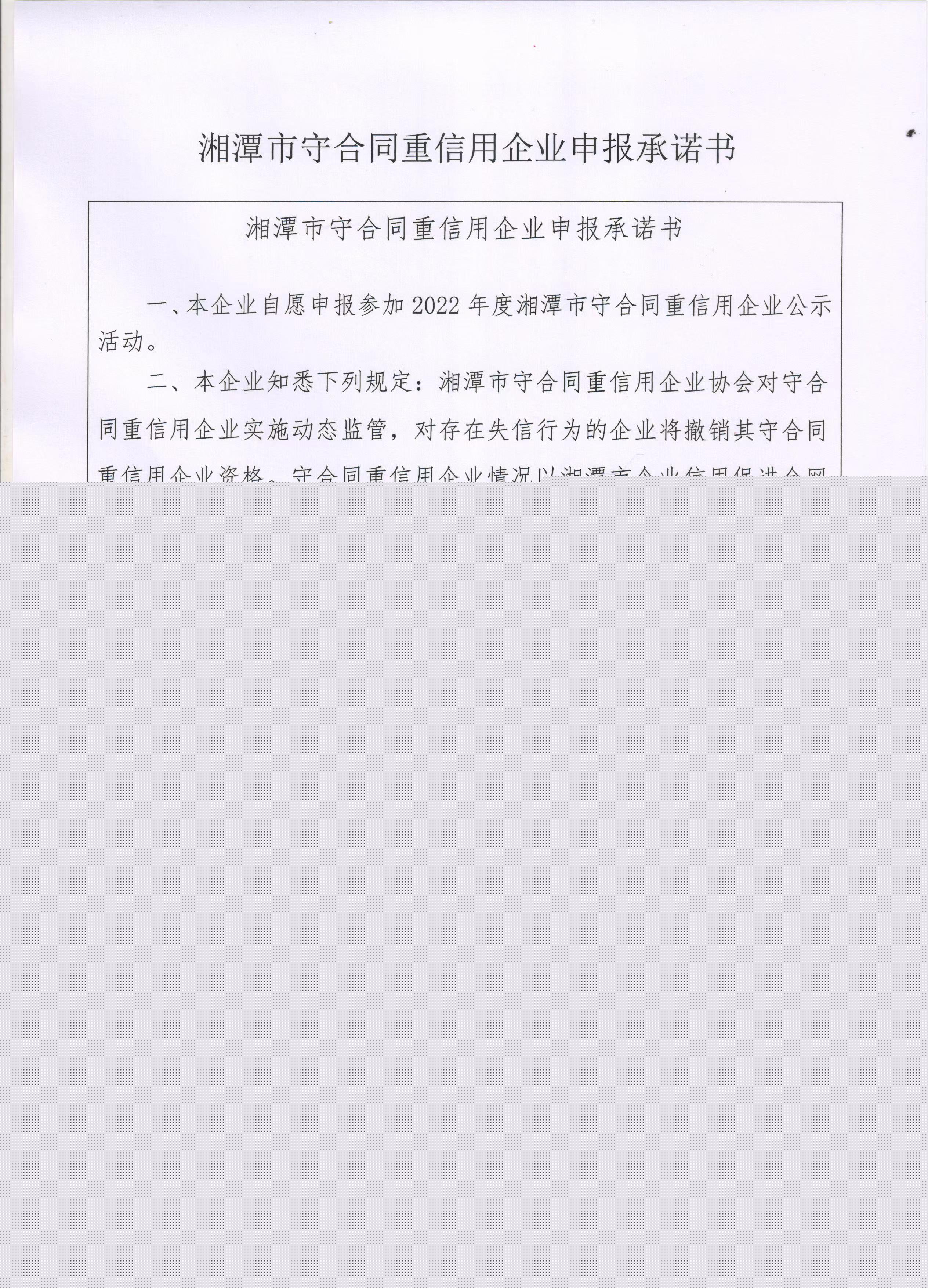 本企業(yè)根據(jù)《湘潭市守合同重信用企業(yè)申報規(guī)定》等編制 2022 年度企業(yè)信用報告書,并保證本報告書內(nèi)容真實、準(zhǔn)確、完整。