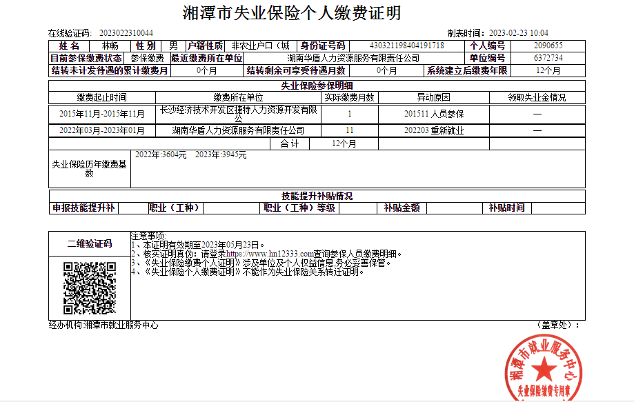 社保繳納證明: