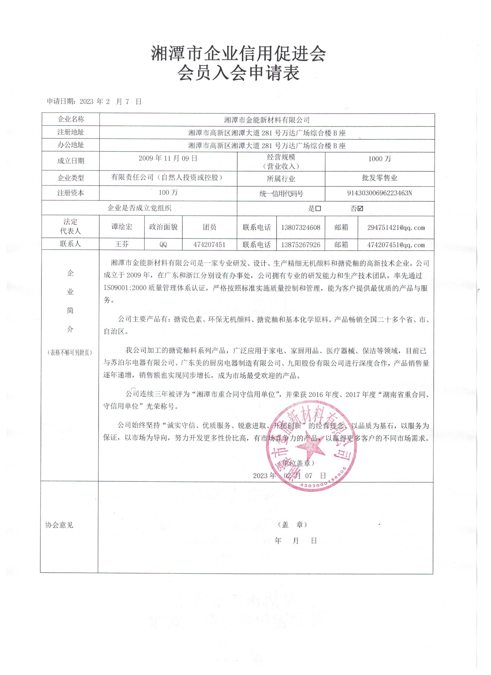 | 名稱: 湘潭市金能新材料有限公司 | 登記證號(hào): 91430300696223463N | 法定代表人: 譚繪宏 | |||||||||