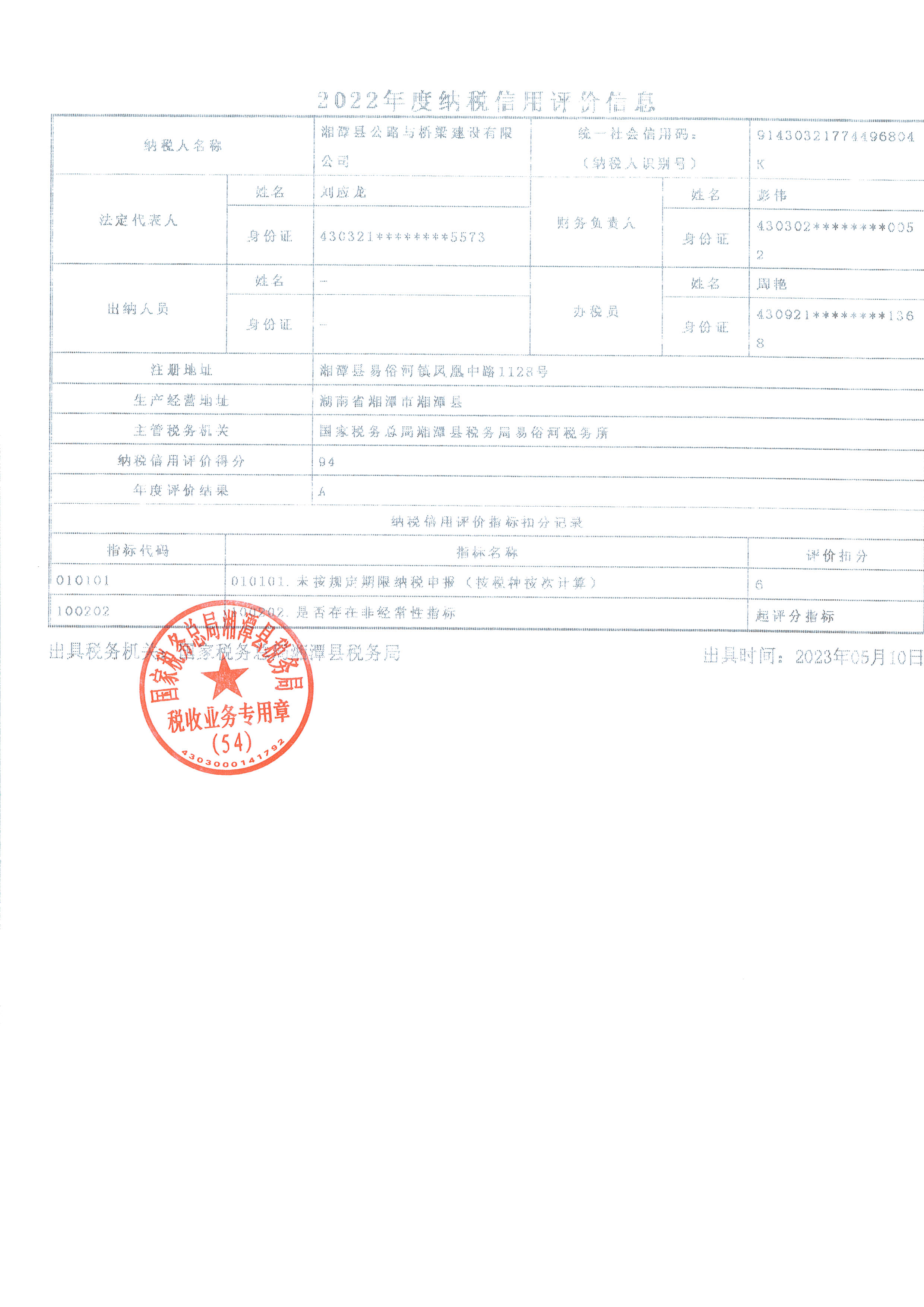 企業(yè)納稅信用等級報告: